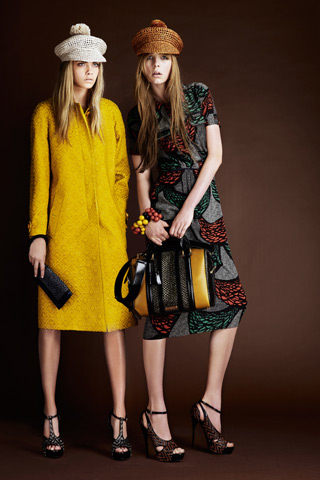 This fashion house incorporated multiple African elements in its Resort 2012 collection. While maintaining its quintessential British style through its iconic tailoring and silhouette, Resort 2012 alludes to the Ankara fabric and wax prints that are prevalent throughout many African countries' traditional dress. The collection isn't overly ethnic, but touches on tribal through details highlighted in the shoes and handbags.